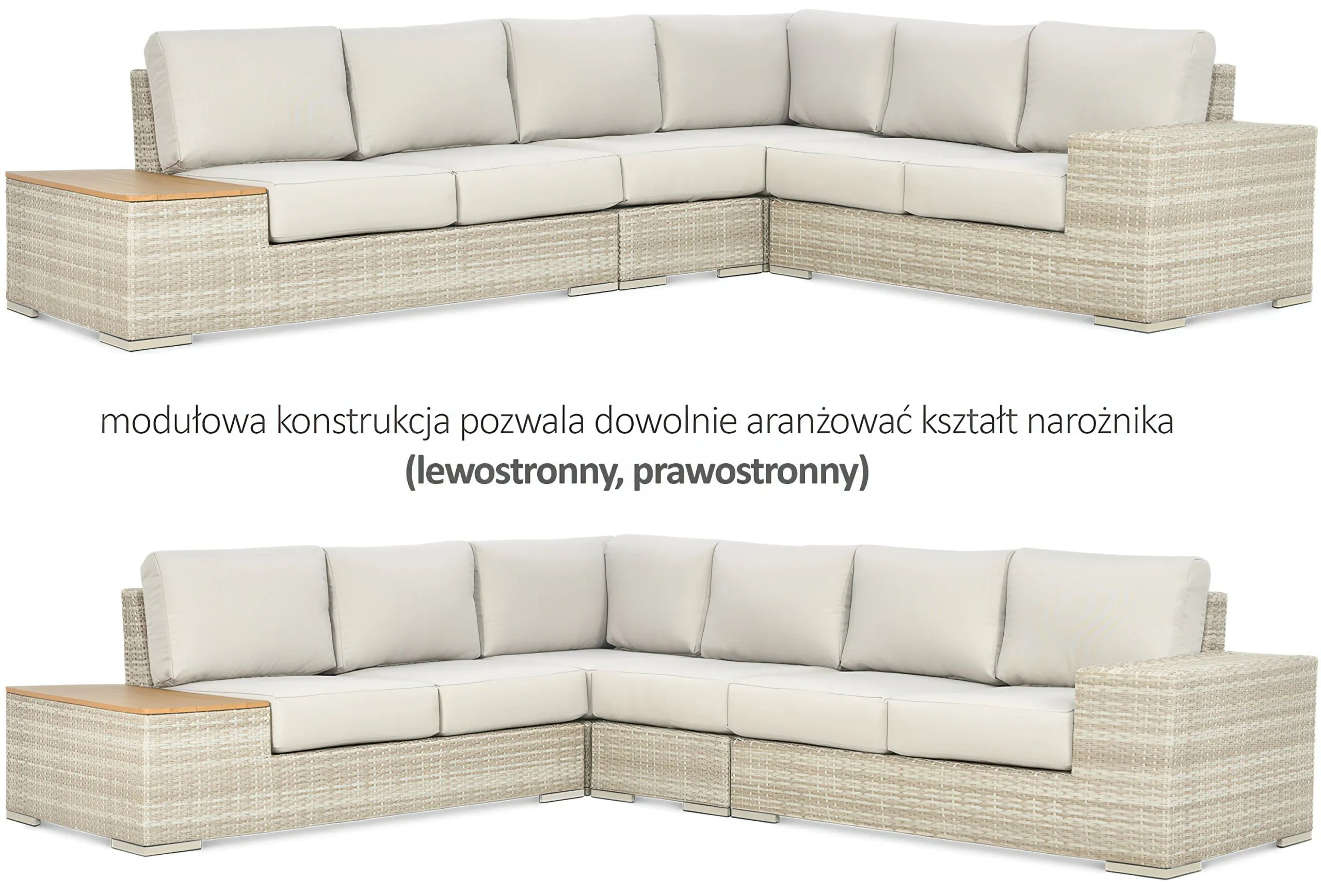 Wykończenie z technorattanu wysokiej jakości gwarantuje odporność na wilgoć, promieniowanie UV oraz zmienne warunki atmosferyczne.