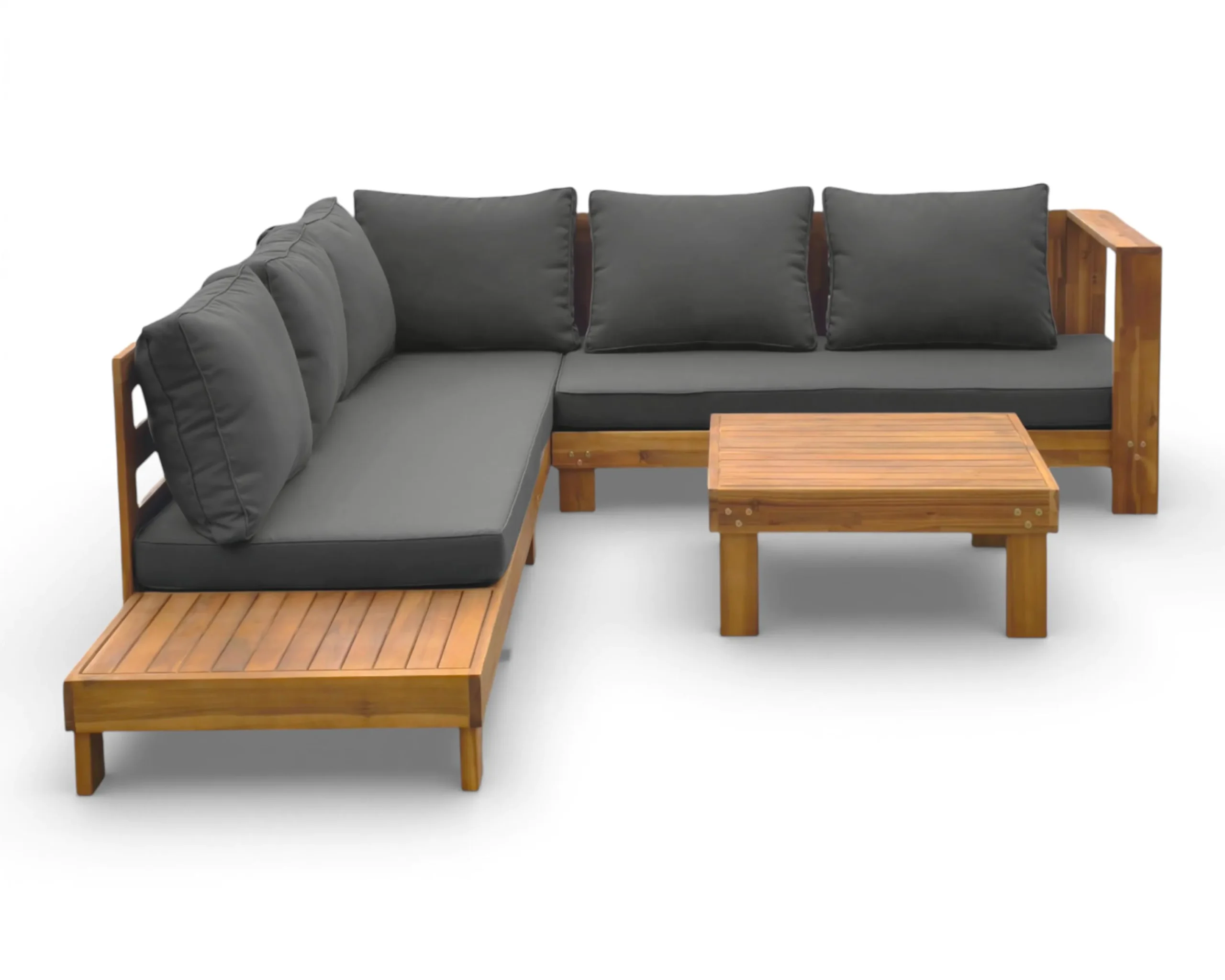 Narożnik HAVLA CAFFE to stylowy zestaw wypoczynkowy wykonany z naturalnego drewna akacjowego, który doskonale łączy ponadczasowy design z wygodą użytkowania. To propozycja dla osób, które cenią wysoką jakość, estetykę oraz przytulny klimat w ogrodzie lub na tarasie.
