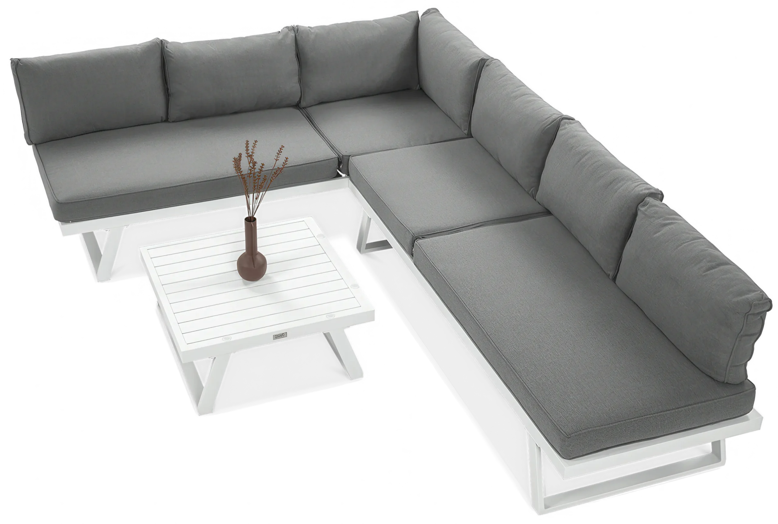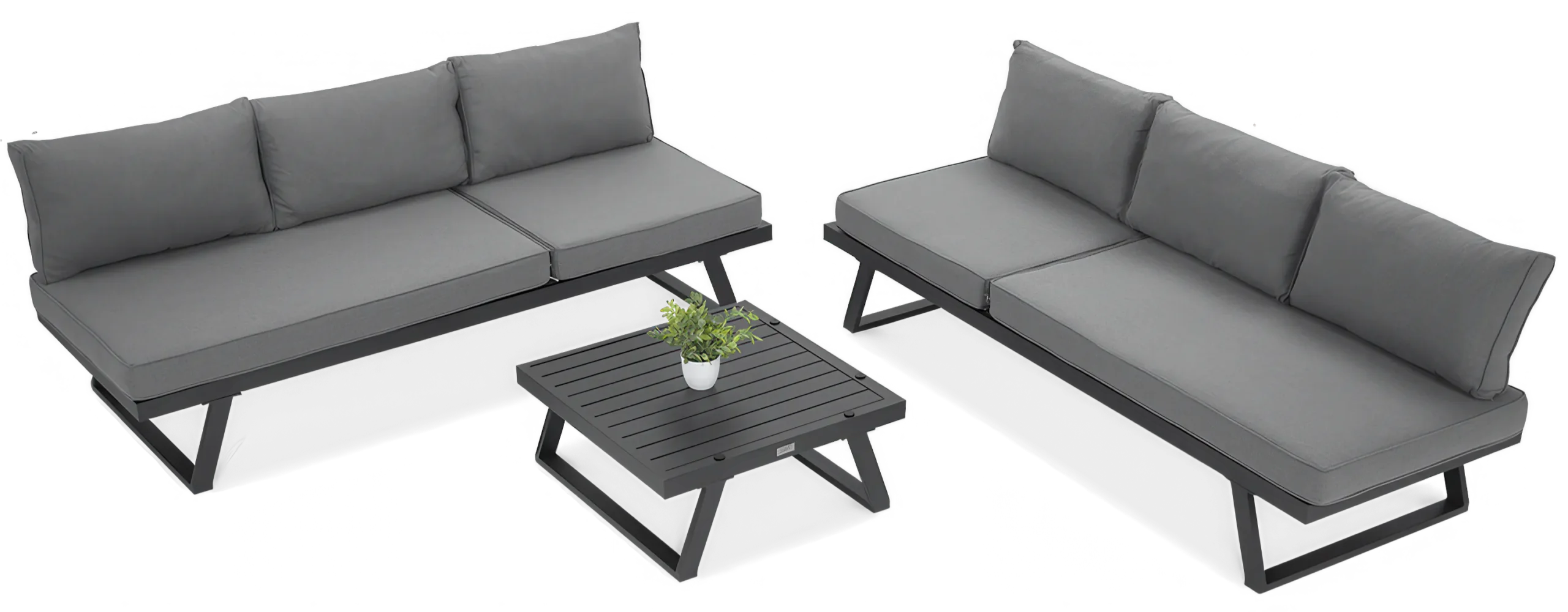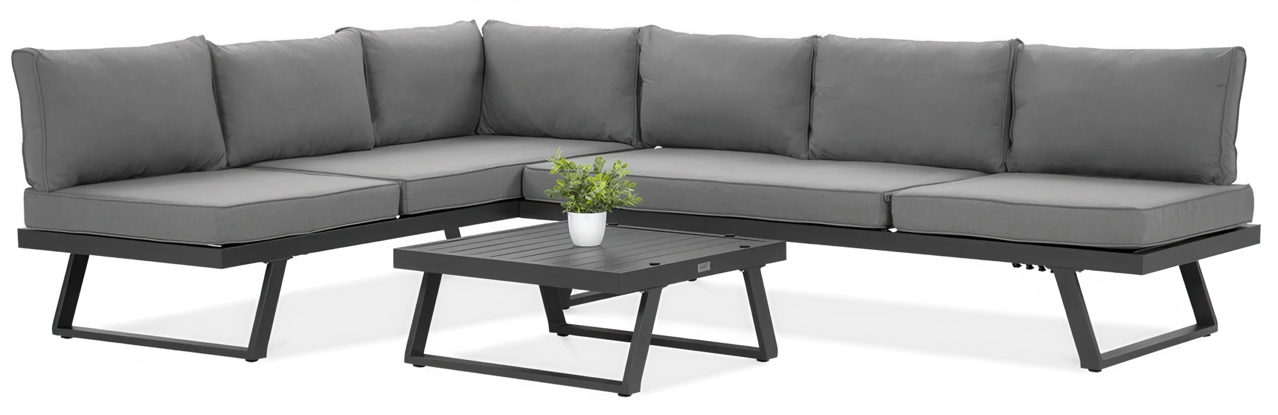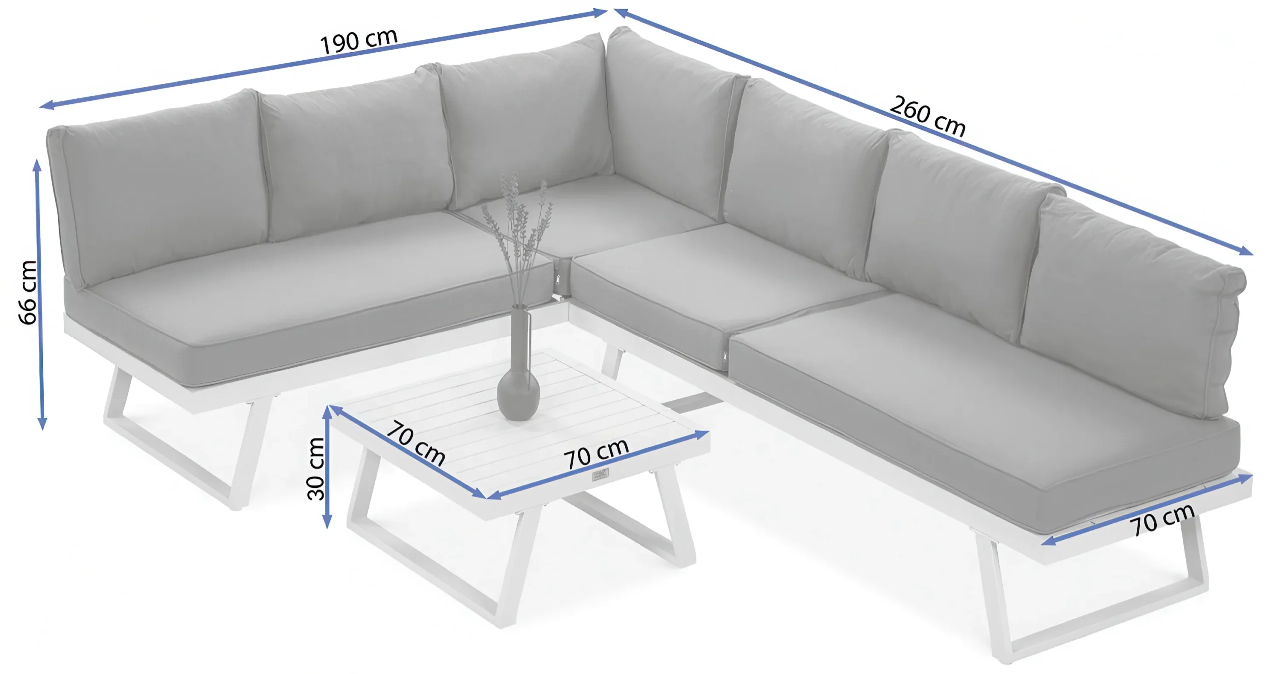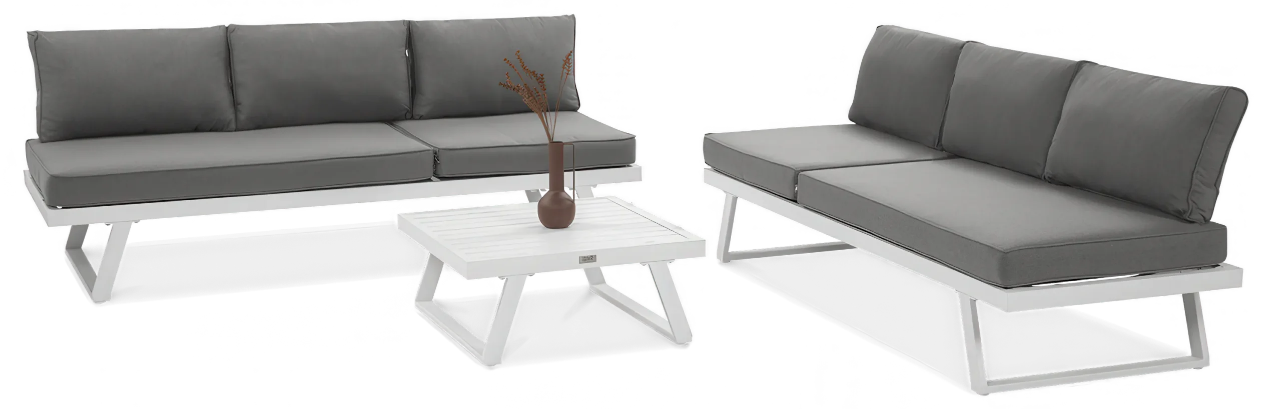 Minimalistyczna forma, solidne wykonanie oraz komfortowe poduszki sprawiają, że zestaw łączy nowoczesny design z wysoką funkcjonalnością, tworząc wygodną strefę relaksu na świeżym powietrzu.