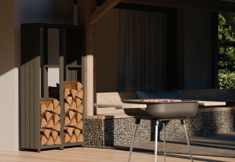 Nowoczesna forma łączy solidną konstrukcję stalową z eleganckim wykończeniem HPL. Stojak na drewno to estetyczne rozwiązanie do przechowywania drewna opałowego w przestrzeni zewnętrznej lub przydomowej. Jego nowoczesna forma łączy solidną konstrukcję stalową z eleganckim wykończeniem HPL, dzięki czemu produkt doskonale wpisuje się zarówno w nowoczesne, jak i industrialne aranżacje. Konstrukcja NEAT-WOOD oparta jest na stalowej ramie i podstawie, zapewniającej wysoką stabilność oraz odporność na obciążenia. Całość posadowiona jest na regulowanych wspornikach. Modułowa budowa pozwala na łączenie kilku elementów w jeden ciąg, zwiększając pojemność i dopasowując zabudowę do indywidualnych potrzeb użytkownika. To rozwiązanie idealne zarówno do mniejszych przestrzeni, jak i większych stref składowania drewna. Zewnętrzne panele z trwałego HPL nie tylko podnoszą walory estetyczne, ale również chronią konstrukcję i zapewniają odporność na wilgoć, zmienne warunki atmosferyczne oraz uszkodzenia mechaniczne. Stojak na drewno to praktyczne rozwiązanie dla osób, które cenią porządek, funkcjonalność oraz estetyczne przechowywanie.