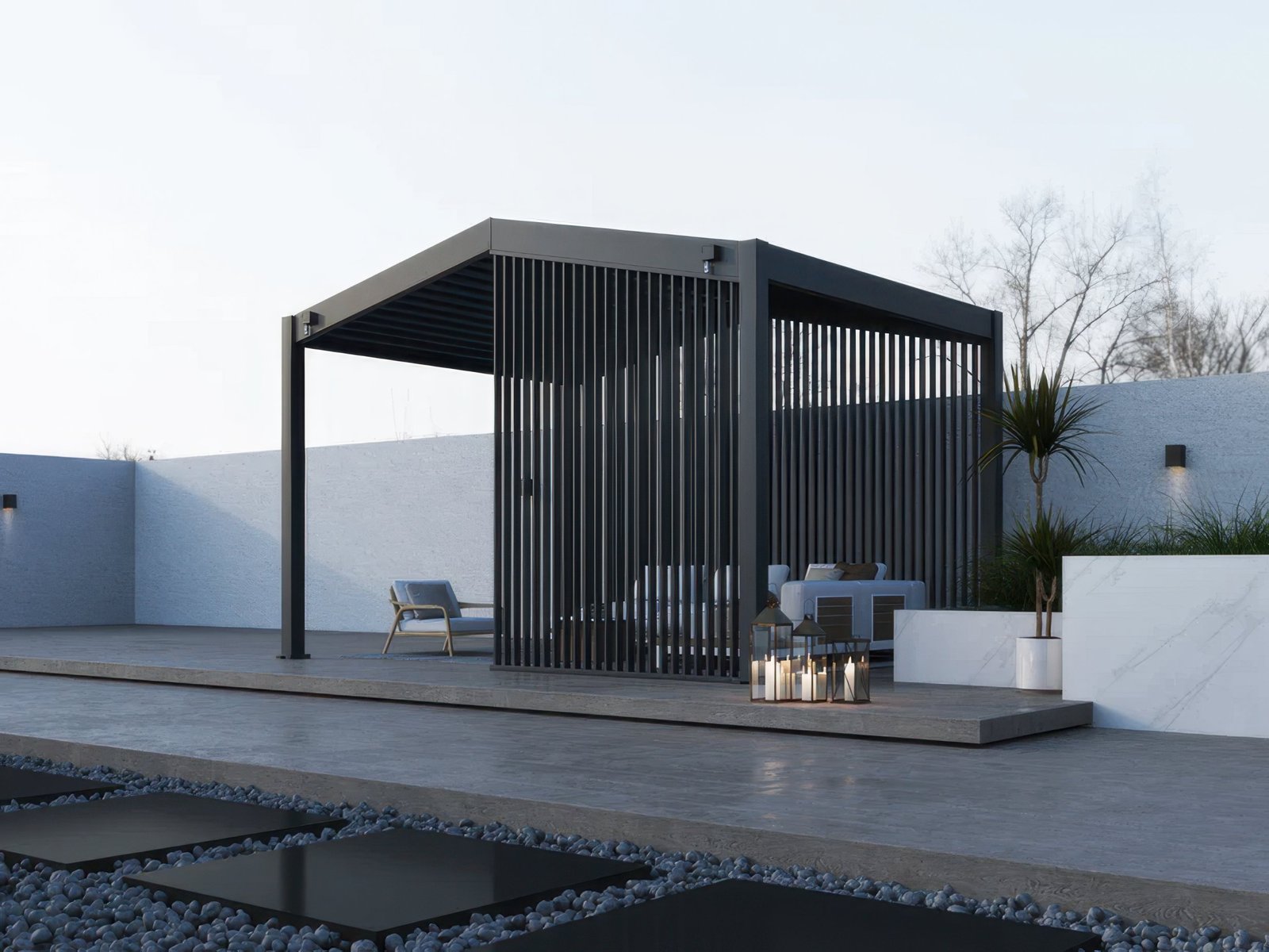 Panel żaluzjowy pionowy dedykowany do pergoli Summit 4×3 w kolorze antracytowym oferuje eleganckie rozwiązanie do osłony przeciwsłonecznej i wiatrowej. Wykonany z trwałego aluminium z wykończeniem proszkowym, zapewnia długotrwałą odporność na warunki atmosferyczne. Jego konstrukcja modułowa pozwala na pokrycie połowy boku o długości 4 m, co umożliwia elastyczną aranżację przestrzeni zewnętrznej.Nr katalogowy: 008952