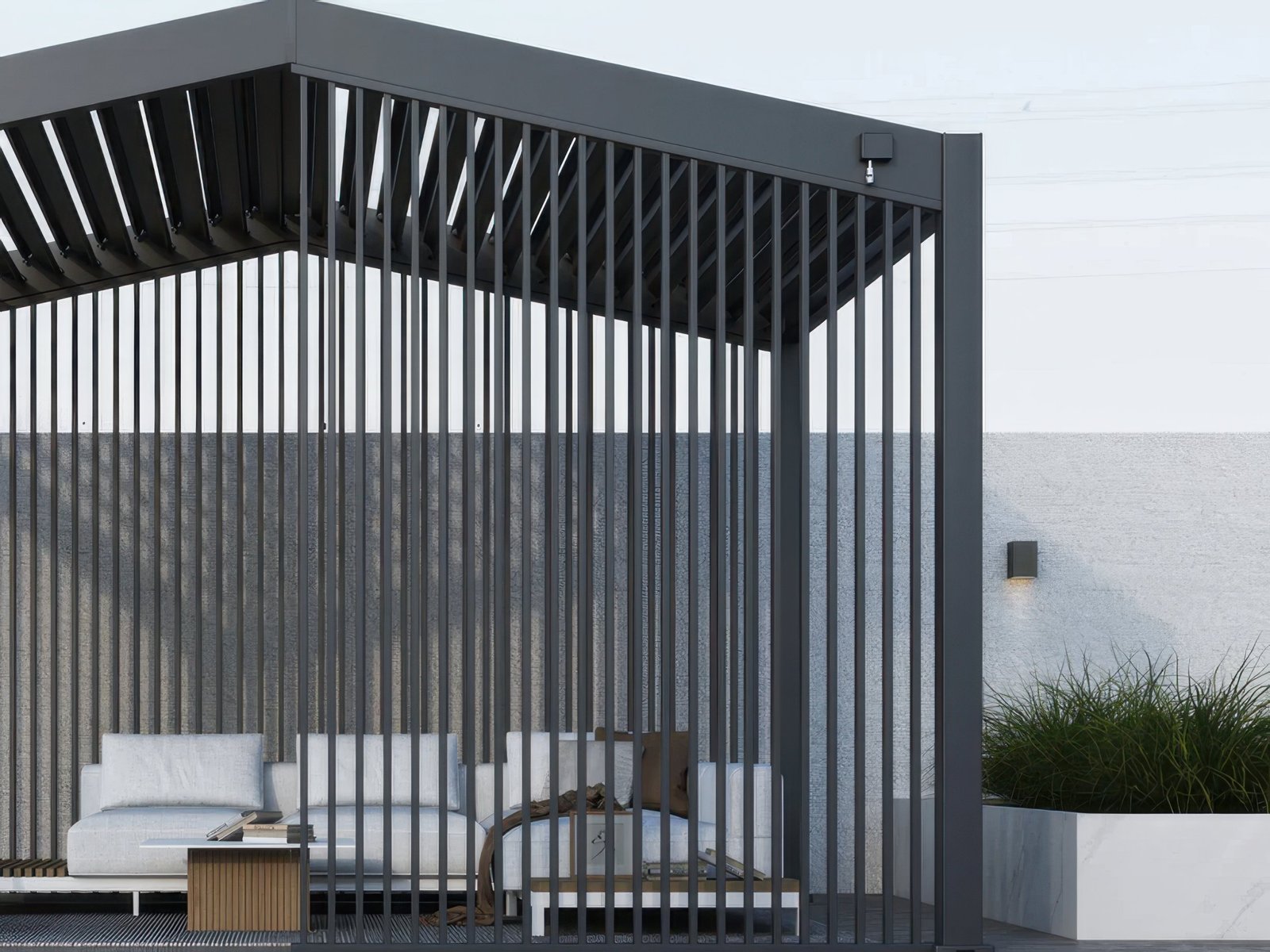 Panel żaluzjowy pionowy dedykowany do pergoli Summit 4×3 w kolorze antracytowym oferuje eleganckie rozwiązanie do osłony przeciwsłonecznej i wiatrowej. Wykonany z trwałego aluminium z wykończeniem proszkowym, zapewnia długotrwałą odporność na warunki atmosferyczne. Jego konstrukcja modułowa pozwala na pokrycie połowy boku o długości 4 m, co umożliwia elastyczną aranżację przestrzeni zewnętrznej.